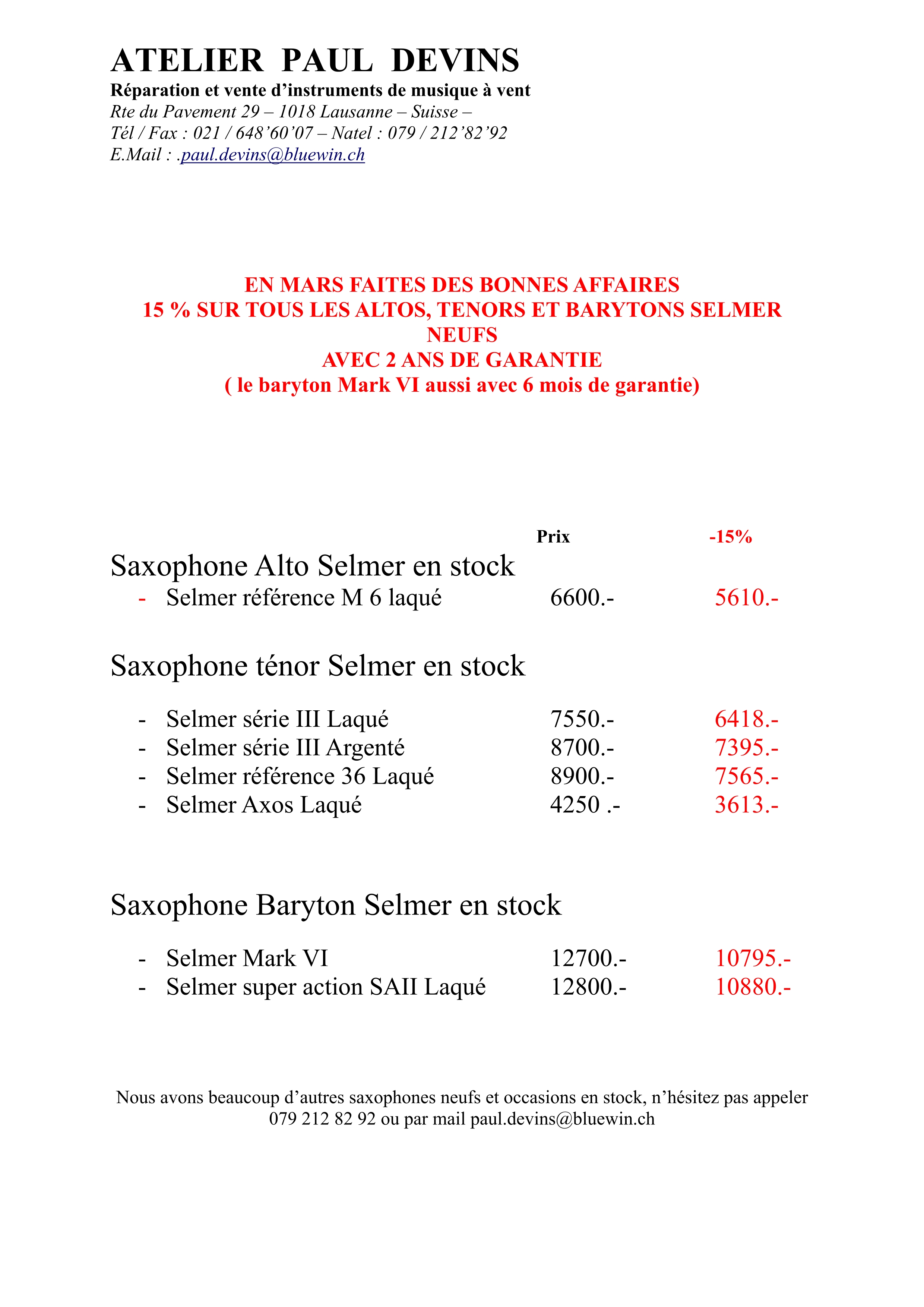Saxophones, flûte traversière, clarinettes, trompette, trombone et gros cuivres, hautbois, basson, anches & accessoires